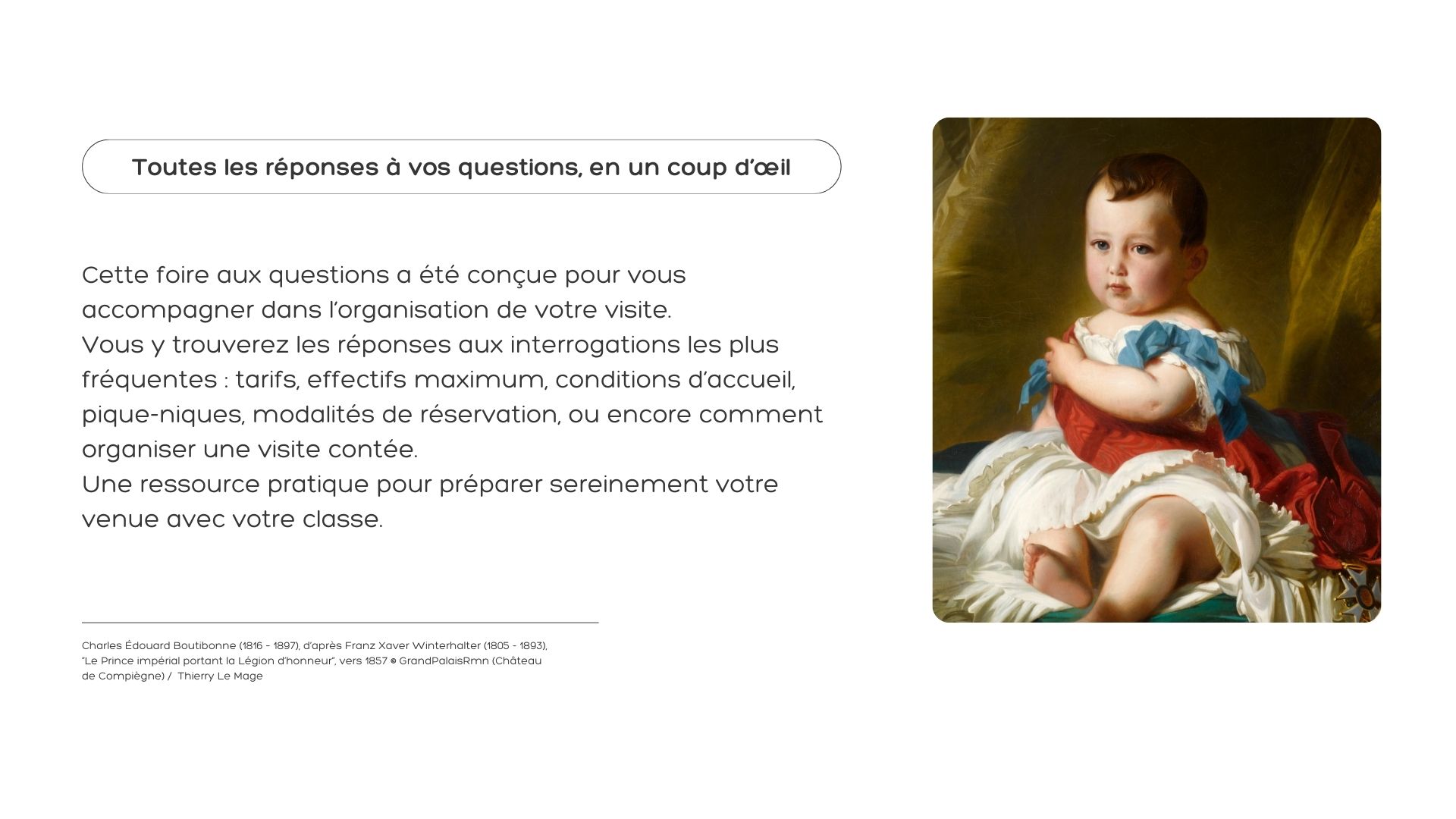 Pour une visite contée, une visite dessin seule ou une visite en simultané avec un autre type de visite, merci de contacter directement le service réservation.